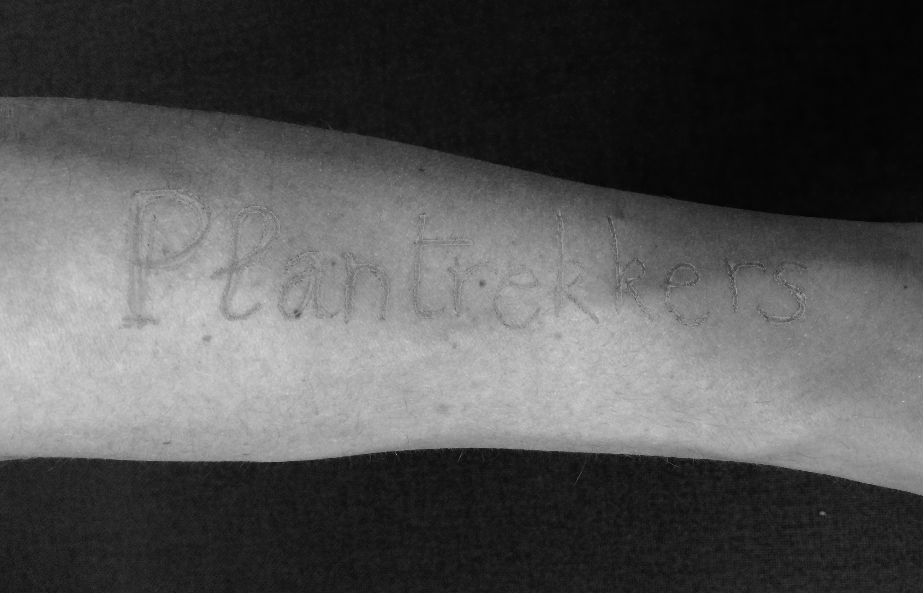 “Ik reed vroeger met een Harley, en er staat Harley op. Ik vrijde vroeger met Daisy, en er staat Daisy op. Ik vrijde vroeger met Jessica, en er staat Jessica op. Ik zou nog graag een portret zetten van een hond van mij die overleden is. Er staat eigenlijk een beetje van alles op.”